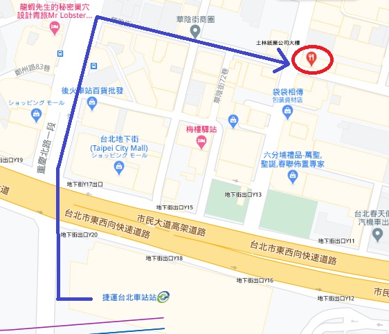 場所:台北駅から徒歩5分(地下街出口Y13からだと2分)